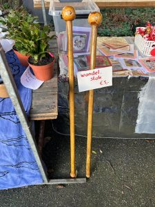 Bij de kraam van het eigengemaakte tuingereedschap, een favoriet van mij, kocht ik een  prachtige wandelstok en kreeg er nog bloemzaadjes en laurierblaadjes bij. Heel attent.