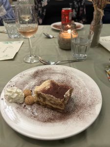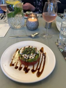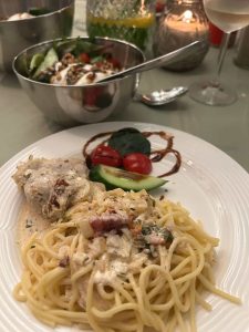 Het was een heerlijke en gezellige avond met een voorgerecht, een hoofdgerecht, een dubbel nagerecht en koffie als laatst.