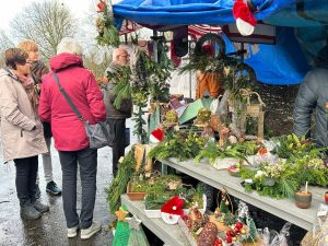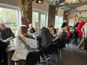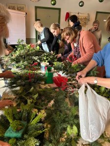 Kerststukjes te koop of in de kantine om zelf te maken. Daar was het zo druk….even geen plek meer.