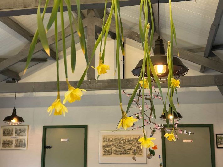 De tafels waren mooi gedekt. De entourage in  lentesfeer.