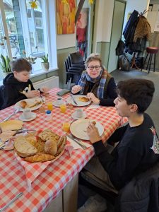 2 kleinzonen, van mij, kwamen logeren, dus heb ik maar even snel gemaild of ze nog mee konden ontbijten. Gelukkig was er nog plek.
