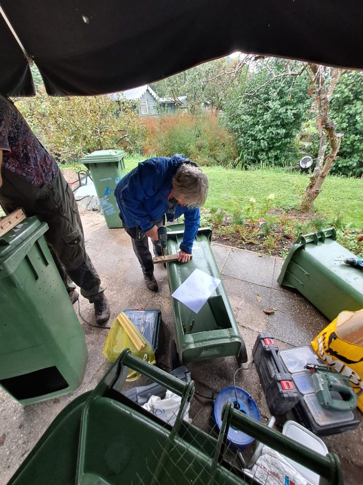 Bij de gemeente kon de werkgroep oude kliko bakken krijgen. Oud hout, kippengaas en pvc-buis waren al aanwezig. Leo Knijnenburg en Eduard de Vries waren de enthousiaste en harde werkers qua voorbereidingen, en daar gaat heel veel tijd in zitten. Ontzettend leuk die betrokkenheid op de vereniging.